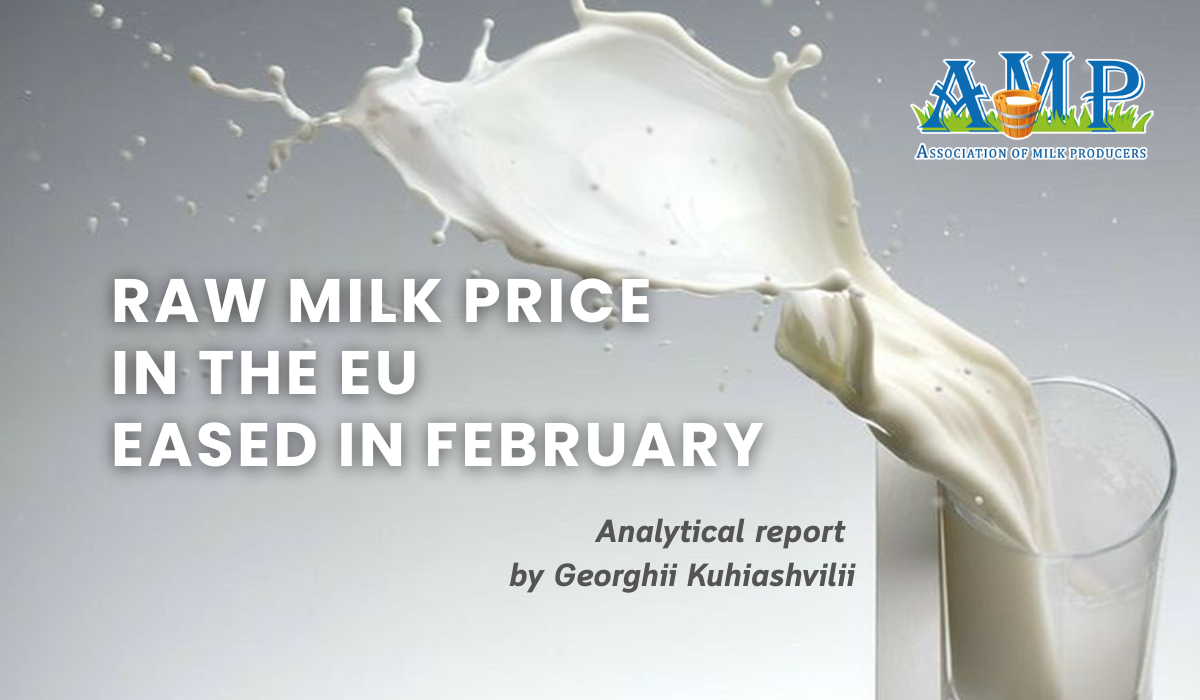 According to preliminary data from the European Commission, in February 2026, the average price for raw milk in the EU was 44.19 eurocents per kg, which is 2.13% less than in January 2026. Compared to the price as of February 2025, milk in the EU has become 17.77% cheaper. In February, the price for extra-grade milk in Ukraine was 30.55 eurocents per kg.
