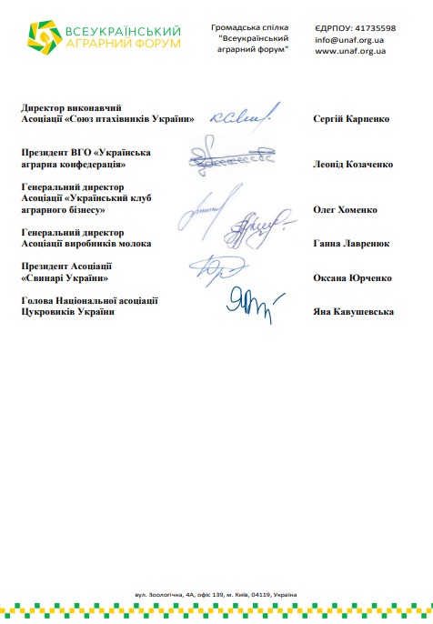 У зверненні аграрні асоціації закликають Прем’єр-міністра підтримати такі рішення: