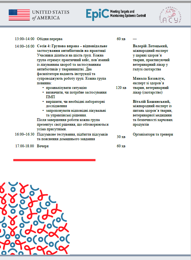 Окрему увагу приділять практичній частині: робота з кейсами дозволить відпрацювати прийняття рішень щодо лікування та управління застосуванням протимікробних препаратів на рівні господарства.