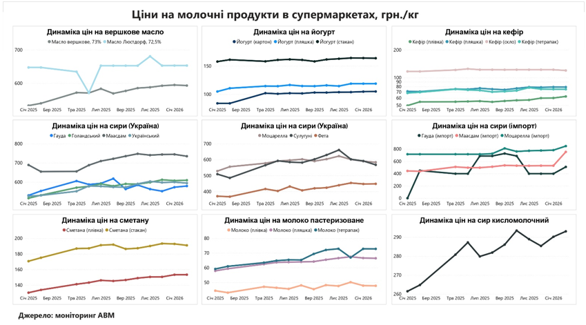 Георгій Кухіашвілі зауважує, що ціни на більшість молочних продуктів майже не змінилися за останній місяць. Цінова політика торговельних мереж не заохочує українців купувати більше молочних продуктів. Попри зниження цін на молочну продукцію та молоко-сировину, роздрібні ціни для кінцевого споживача, зокрема на вершкове масло, залишаються високими. Супермаркети імпортують з Польщі масло та інші молочні продукти за довгостроковими контрактами, що створює конкуренцію вітчизняній продукції на полицях супермаркетів.