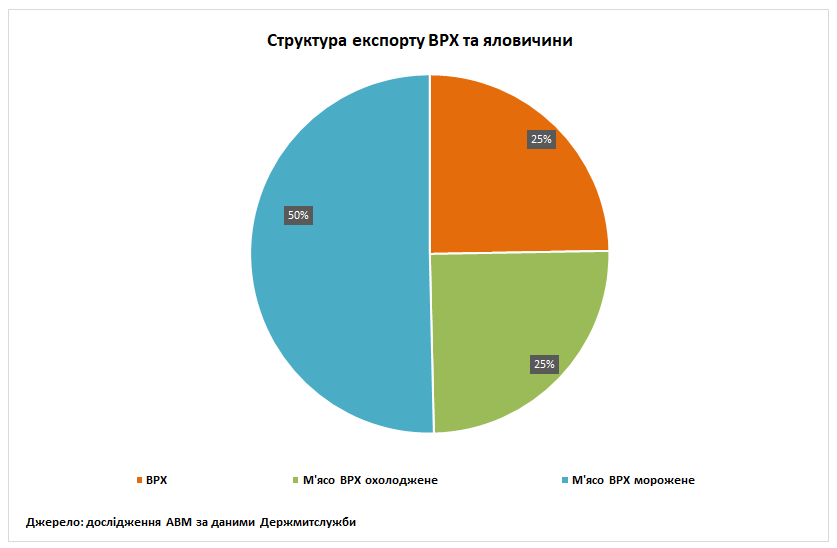 За попередніми даними Держмитслужби, у грудні 2025 року Україна експортувала близько 1,48 тис. т ВРХ живою вагою, що на 38% менше відносно листопада 2025 року і на 63% менше відносно грудня 2024 року. Грошова виручка за експортованих тварин становила 3,39 млн. дол., що на 38% менше відносно листопада 2025 року і на 61% менше відносно грудня 2024 року. У січні-грудні 2025 року Україна експортувала 18,82 тис. т ВРХ живою вагою (+4%) на суму 43,48 млн. дол. (+23%).