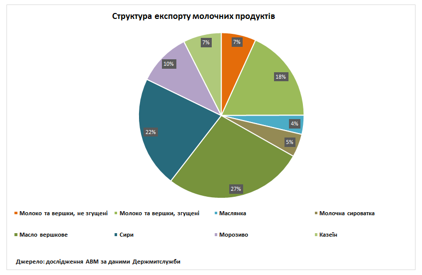 За попередніми даними ДССУ, в серпні 2025 року було експортовано 8,65 тис. т молочних продуктів на суму 25,13 млн дол.