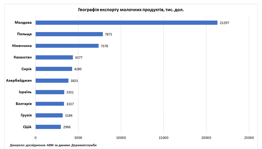 Досить значними є також поставки українських молочних продуктів до країн Близького Сходу та Північної Африки. Сирія за останні чотири роки стала одним з ключових покупців українського сухого молока. Втім, Україні поки не вдається наростити експорт до країн Азії через безпекові ризики та високу вартість логістики, зокрема страхування ризиків.