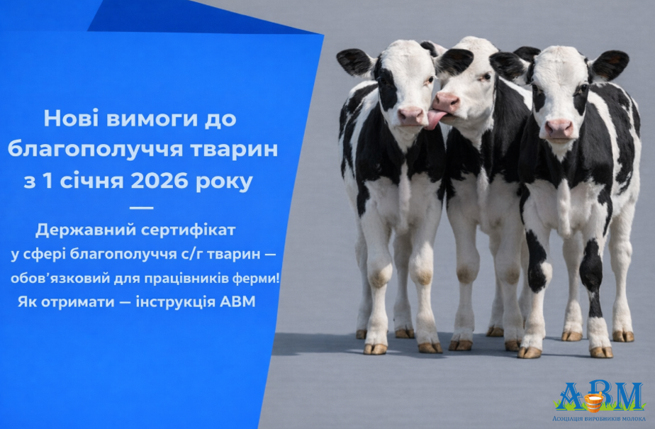 Запрошуємо взяти участь у вебінарі від ДПСС щодо роз'яснення вимог до благополуччя ВРХ і телят, що вступають в дію з 01 січня 2026. Звертаємо увагу, що для малих фермерських господарств вебінар запланований на понеділок 22 грудня 2025 року, а для промислових господарств - 23 грудня 2025 року, вівторок.